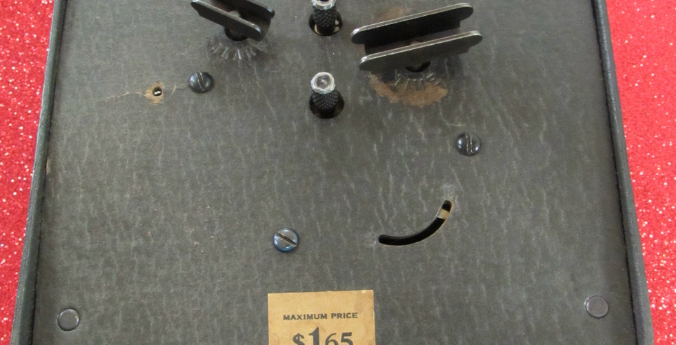 I haven’t found figures on exactly how many of these Warlarms were made, but we are proud to have two very fine (nearly mint-condition) examples in the museum, one of which still bears its original price tag on the back. None of us here at the museum has opened one of these clocks to examine the movement – mainly because we don’t want to risk damaging that “moulded wood fibre” case.